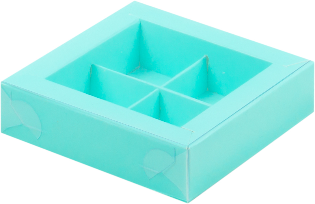 Коробка для 4 конфет, мятная с окном