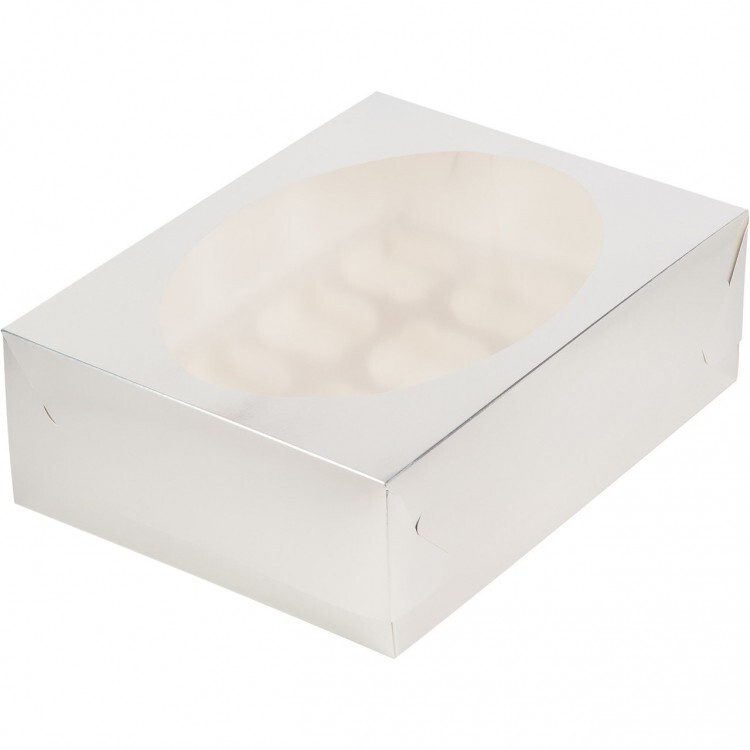 Коробка для капкейков 12 ячеек, белая с окном