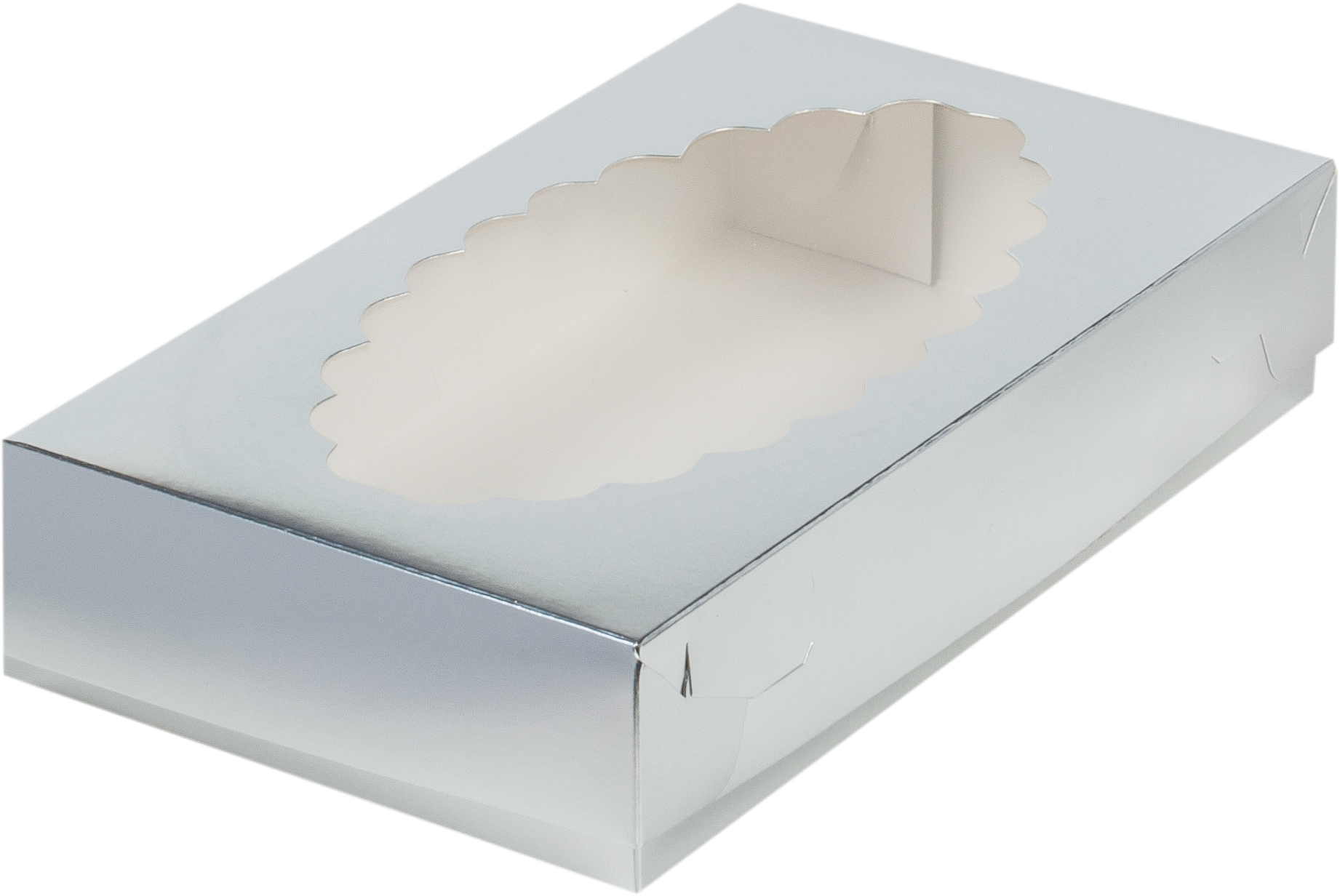 Коробка под зефир и печенье 24*14*5см серебряная с окном