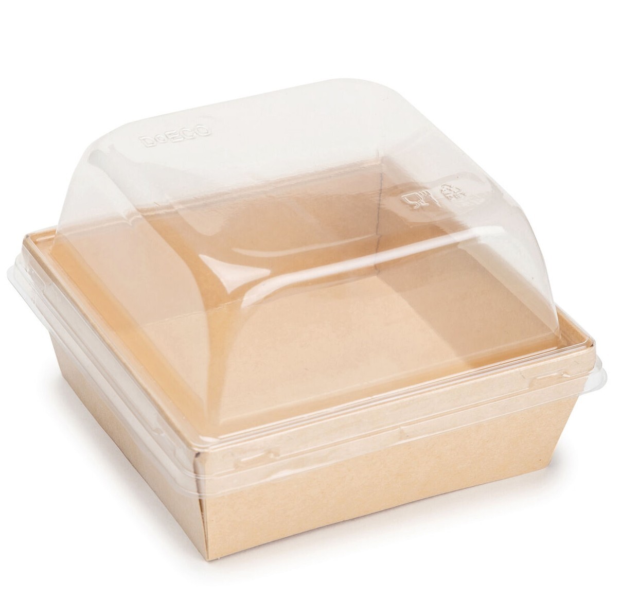 Коробка под бенто-торт 15*15*9,5см крафтовая с прозрачной крышкой