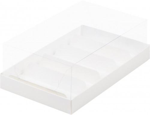 Коробка под эклеры 5 ячеек 22*13,5*7см белая с прозрачным куполом