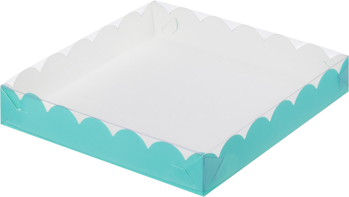 Коробка под пряники и печенье 12*12*3,5см мятная с прозрачной крышкой