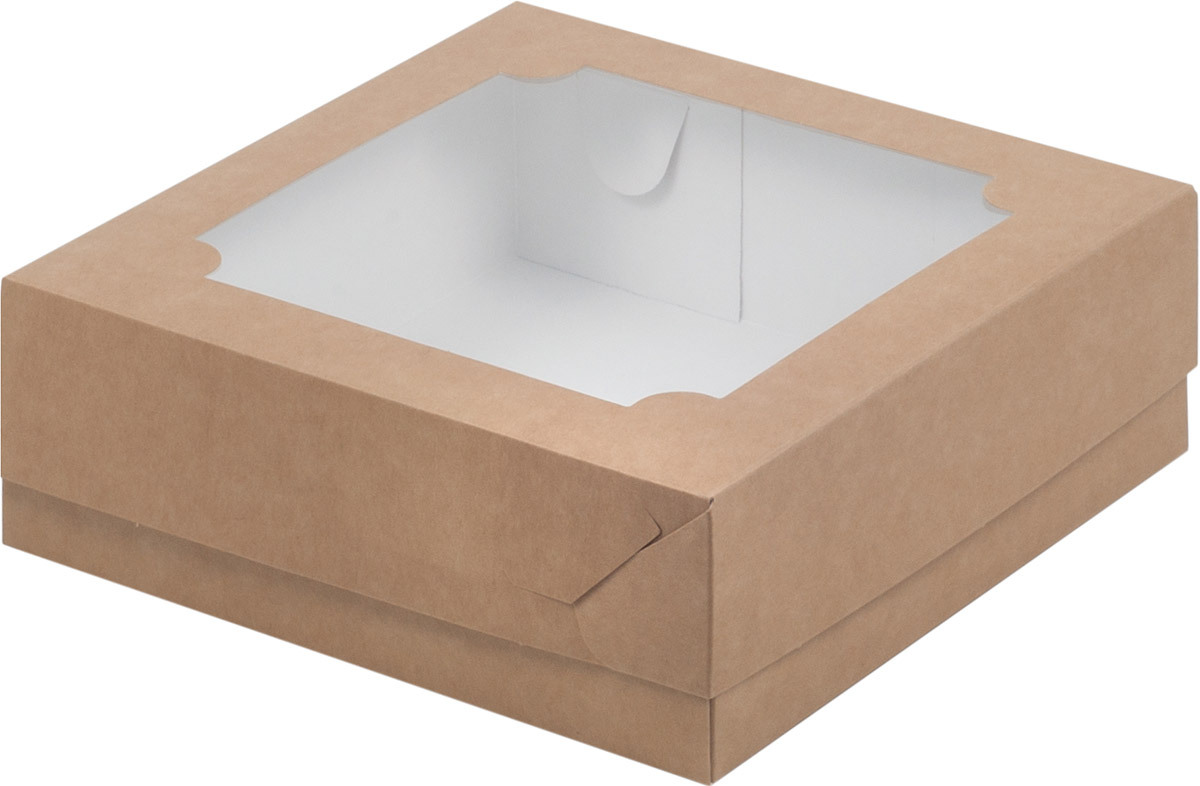 Коробка под зефир и печенье 20*20*7см крафтовая с окном