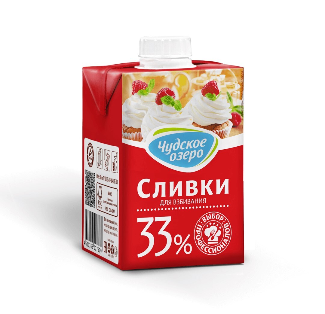 Натуральные сливки для взбивания 33% Чудское озеро 0,5л