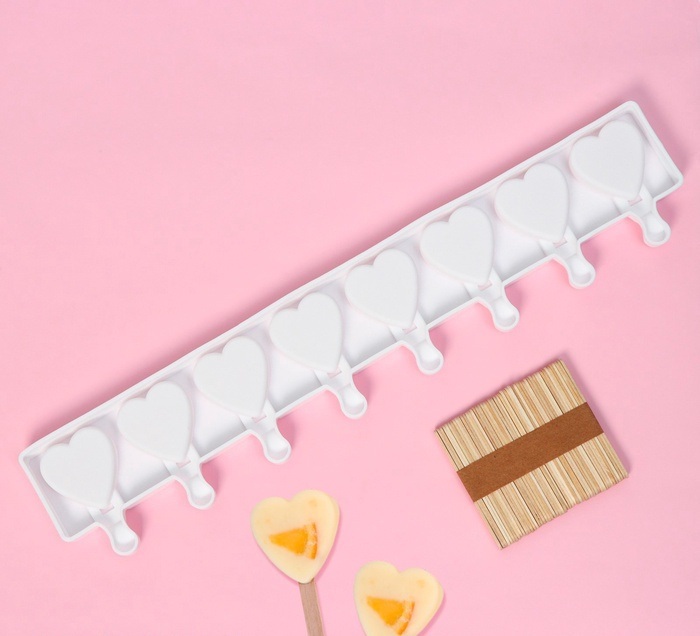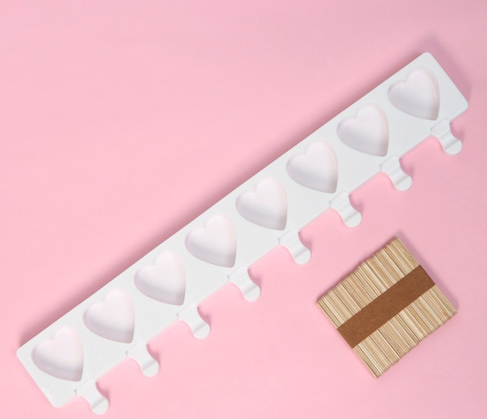 Силиконовая форма для мороженого и леденцов с палочками "Сердца" 49*6,5см