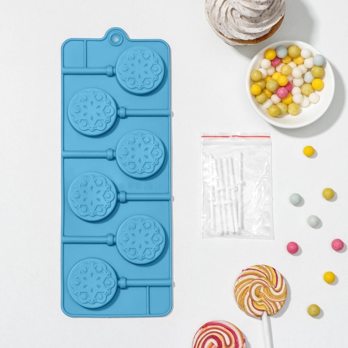 Силиконовая форма для шоколада и леденцов с палочками "Новогодние леденцы" 24*9см