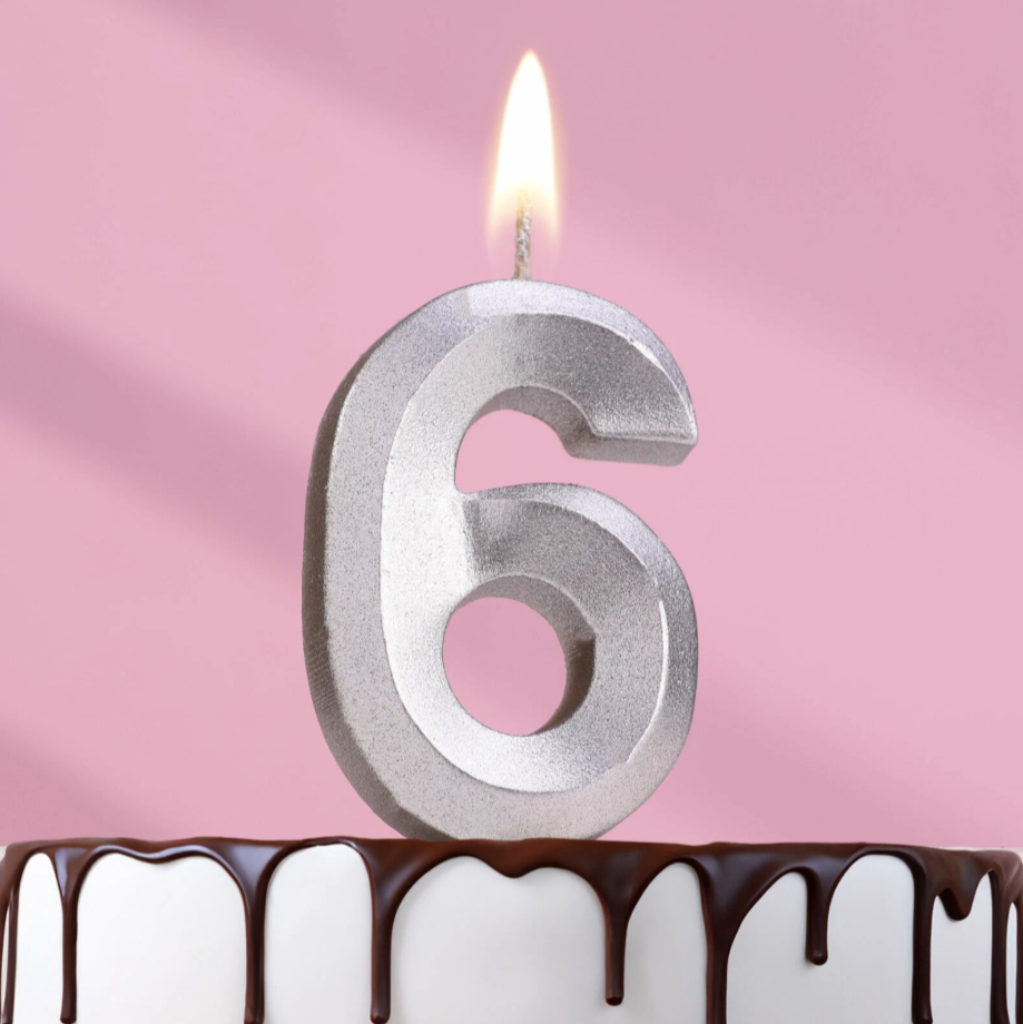 Свеча-цифра 6 грань, серебро