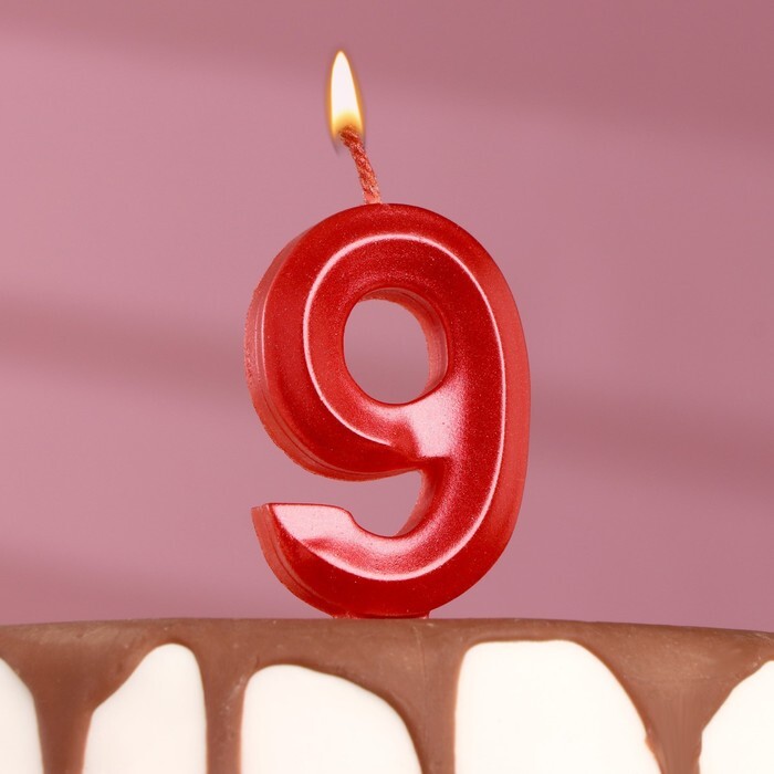 Свеча-цифра 9 грань, красная