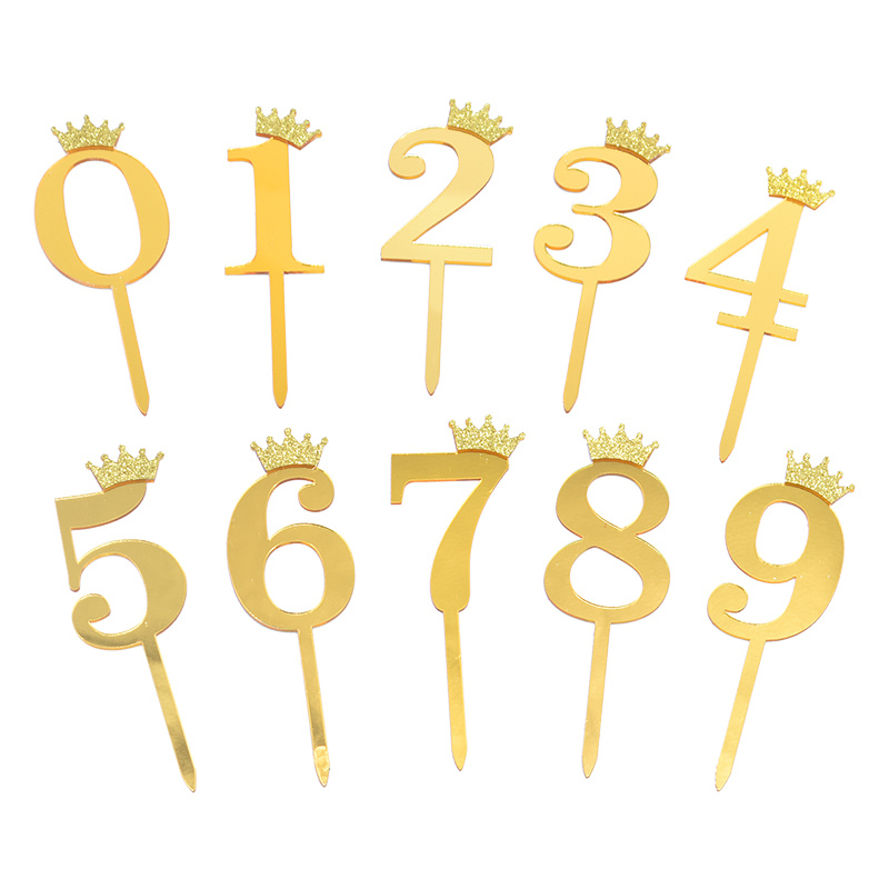 Топперы для торта "Цифра золотая с короной" в ассортименте 1 шт